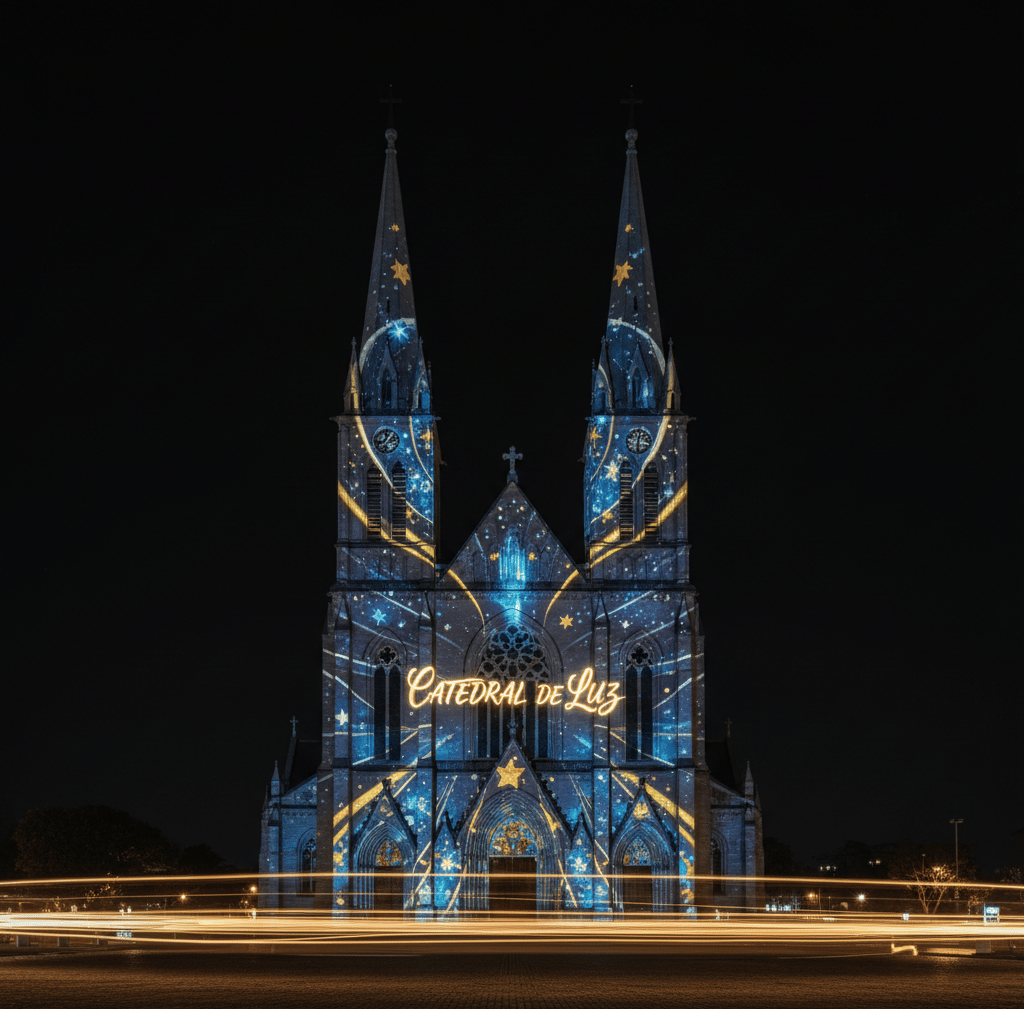 Projeções catedral + orquestra natalina. 29/11 a 4/12 (qui-sáb) 19h30/20h30/21h30/22h30. Agende catedraldeluz.com.br. Gratuito 35min.