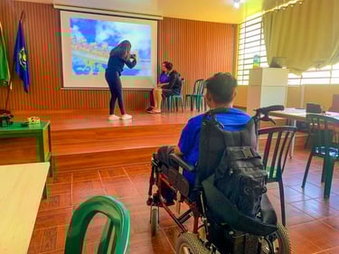 Já a direção escolar mostrou-se parceira desde o início, cuidando da parte burocrática e logística para que tudo acontecesse da melhor forma. Reservaram a sala com projetor para exibirmos os slides e vídeos de exemplo, ajustaram os horários para evitar conflitos com provas e ainda estiveram presentes, acompanhando de perto e incentivando os alunos. Saber que eu tinha esse respaldo me deu tranquilidade para focar no conteúdo e na metodologia.
