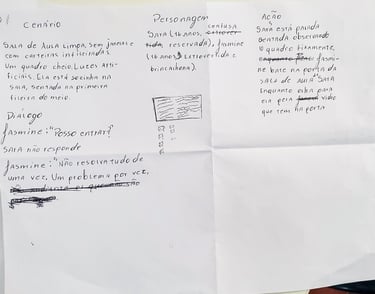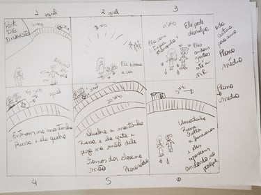 Roteiro: Começamos pelo coração de qualquer produção, que é o roteiro. Apresentei os elementos básicos de uma narrativa audiovisual, cenário, personagens, conflitos, diálogos e ações. Mostrei exemplos de roteiros simples, inclusive cenas curtas do cotidiano escolar, para que eles visualizassem como se escreve o que depois vai para a tela. Em pequenos grupos, os alunos rascunharam ideias e criaram mini-roteiros, descobrindo na prática o poder de contar uma boa história mesmo com recursos limitados.