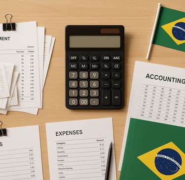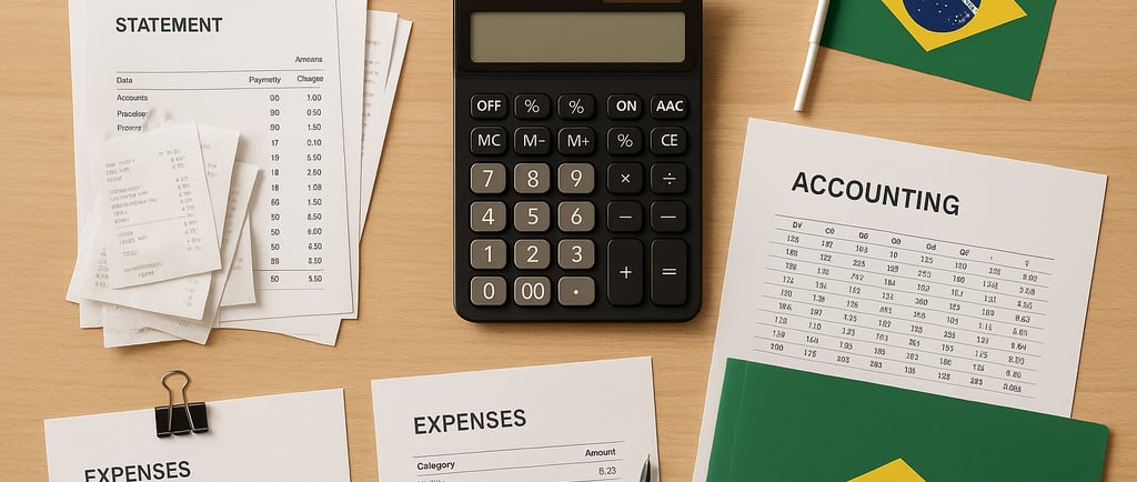 Notas fiscais de despesas como energia elétrica (R$ 2.500), internet (R$ 900), materiais de limpeza (R$ 800)